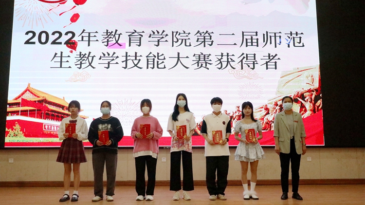 林萌副校長為榮獲學(xué)院第二屆師范生教學(xué)技能大賽一等獎的學(xué)生頒獎