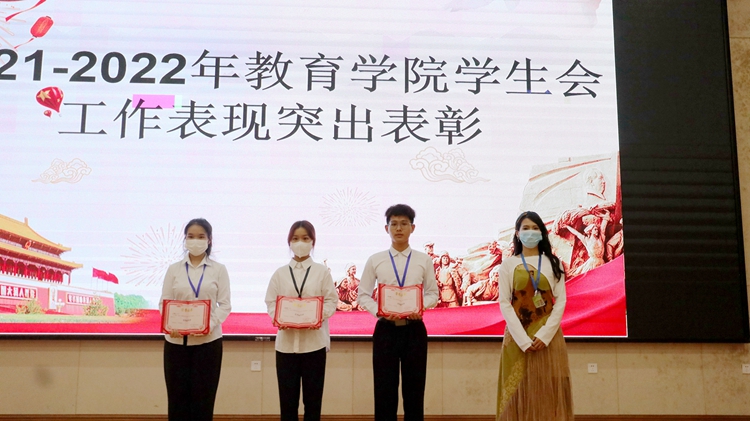 2022年5月12日晚上19:00,教育學(xué)院2021—2022年度表彰大會在圖文信息大樓一樓學(xué)術(shù)報告廳舉行。學(xué)校副校長林萌,教育學(xué)院院長梁善雅,教育學(xué)院辦公室主任吳棉、學(xué)生科科長兼分團委書記盧燕梅出席表彰大會,教育學(xué)院師生代表參加大會。