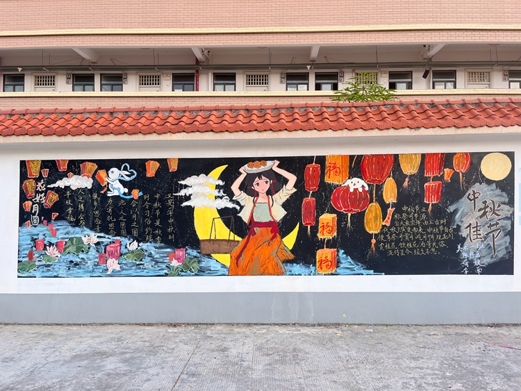 活動(dòng)中,各班級(jí)的同學(xué)們充分發(fā)揮自己的想象力和團(tuán)結(jié)合作的精神,把對(duì)中秋的節(jié)日祝福和對(duì)新生、新學(xué)期的美好祝愿,用一筆一劃勾勒在黑板上。