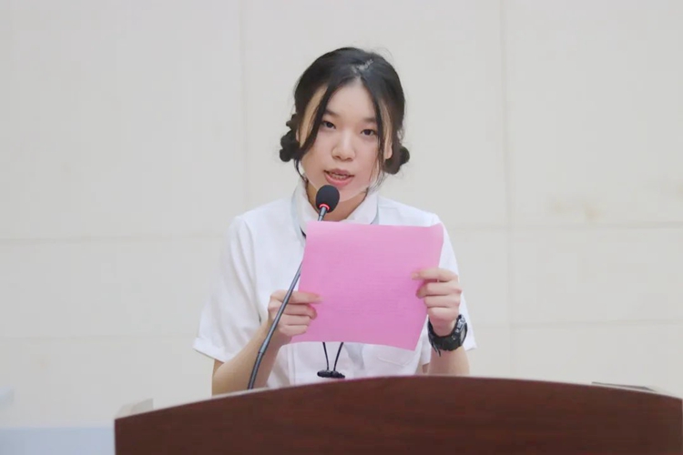 校廣播站播音部部長鮑嘉檸發(fā)言