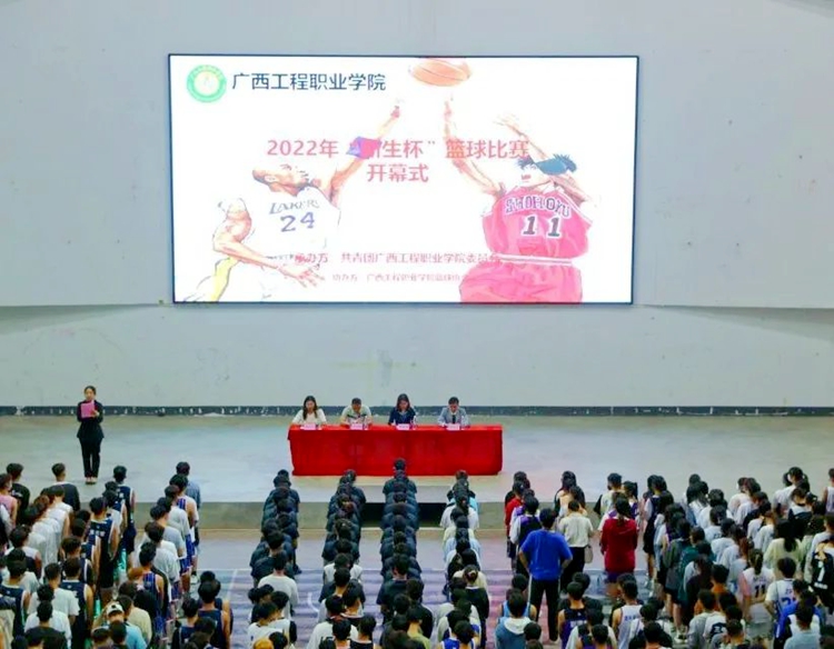 在全場(chǎng)人員的熱烈掌聲中,校團(tuán)委李鳳玲老師宣布:廣西工程職業(yè)學(xué)院2022年“新生杯”籃球賽正式開(kāi)幕!