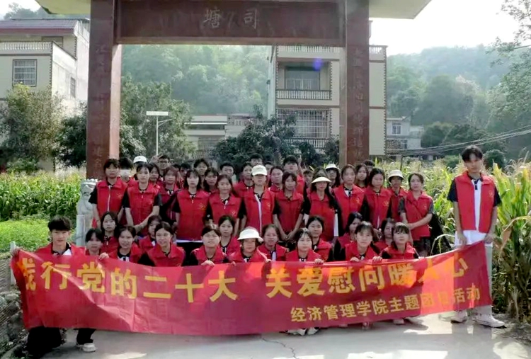 為進(jìn)一步弘揚(yáng)中華民族尊老敬老的傳統(tǒng)美德,倡導(dǎo)敬老、愛老、助老的新風(fēng)尚,讓黨的二十大精神深入農(nóng)村,打通為民服務(wù)“最后一米”,2023年6月10日上午8點(diǎn),經(jīng)濟(jì)管理學(xué)院志愿者服務(wù)隊(duì)到平果市塘司屯開展“踐行黨的二十大 關(guān)愛慰問暖人心”主題團(tuán)日活動,挨家挨戶走訪老人,開展志愿服務(wù)活動,在鄉(xiāng)村振興中續(xù)寫青春之歌。