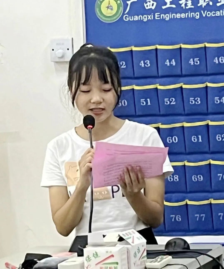 學(xué)生干部優(yōu)秀代表謝珍珍同學(xué)上臺發(fā)言