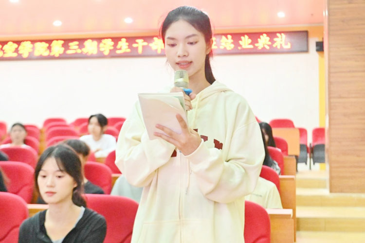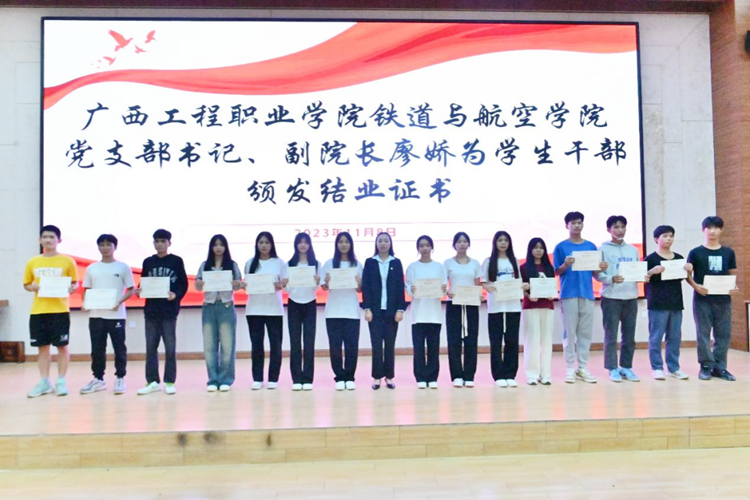 黨支部書記、副院長廖嬌為學(xué)生干部頒發(fā)結(jié)業(yè)證書