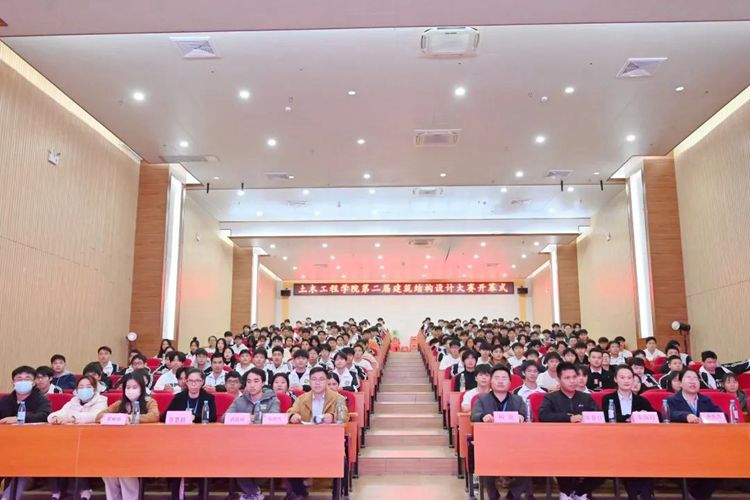 2023年12月2日上午,第二屆建筑結(jié)構(gòu)設(shè)計(jì)大賽開幕式在圖文信息大樓一樓學(xué)術(shù)報(bào)告廳舉行。