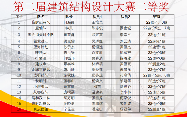 為了培養(yǎng)同學(xué)們的專業(yè)素養(yǎng)和綜合素質(zhì),展示同學(xué)們的學(xué)習(xí)成果和風(fēng)采,2023年12月2日,廣西工程職業(yè)學(xué)院土木工程學(xué)院舉辦第二屆建筑結(jié)構(gòu)設(shè)計(jì)大賽。
