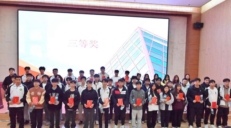 土木工程學(xué)院覃慧穎老師、韋真宇老師、梁天賜老師為榮獲三等獎(jiǎng)的同學(xué)頒獎(jiǎng)