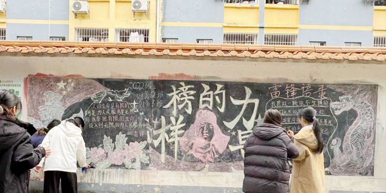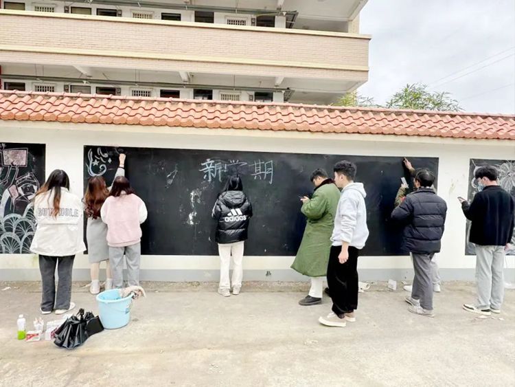 同學(xué)們用毛筆小心地勾勒出每一個(gè)筆畫,將它們匯聚在一起,創(chuàng)造出美麗的圖案。
