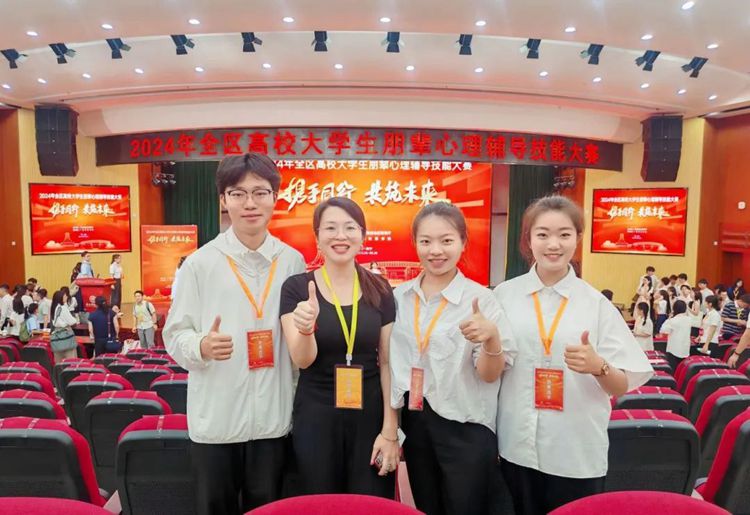 5月25—26日,由自治區(qū)教育廳主辦的2024年全區(qū)高校大學(xué)生朋輩心理輔導(dǎo)技能大賽決賽在廣西財(cái)經(jīng)學(xué)院相思湖校區(qū)舉行。我校參賽隊(duì)伍(隊(duì)員:張曼、胡成超、黃敏;指導(dǎo)老師:黃秋霞、李麗詩(shī)、凌艷婷)在決賽中表現(xiàn)優(yōu)異,榮獲三等獎(jiǎng)。