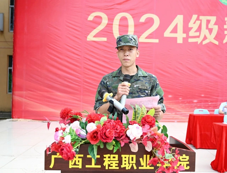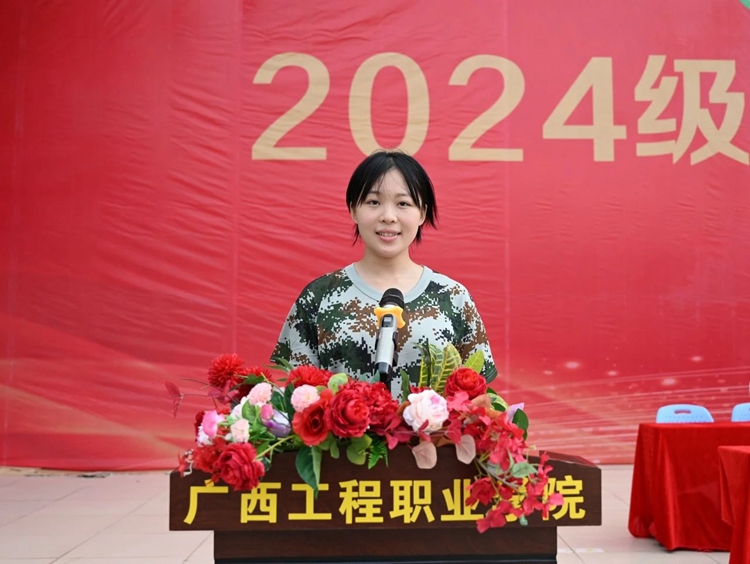 2024級新生代表鐵道與航空學院高速鐵路客運服務專業(yè)黃覃晴同學發(fā)言。她代表全體新生承諾在軍訓中努力做到服從命令,聽從指揮;鍛煉意志,苦練基本功;發(fā)揚軍訓作風,培養(yǎng)優(yōu)良品格。同時,號召全體同學把在軍訓期間養(yǎng)成的良好品德和作風帶到今后的學習中去,高標準、嚴要求規(guī)范自己的言行,遵守學校的各項規(guī)章制度,踏實做人、刻苦學習,力爭在新的起跑線上步伐整齊,一同前進,成為一名德智體美勞全面發(fā)展的大學生。
