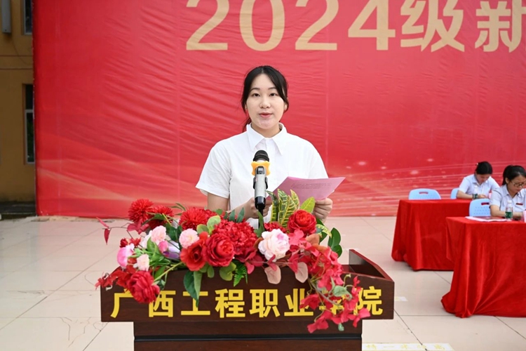 圖為2024級新生代表黃覃晴同學發(fā)言