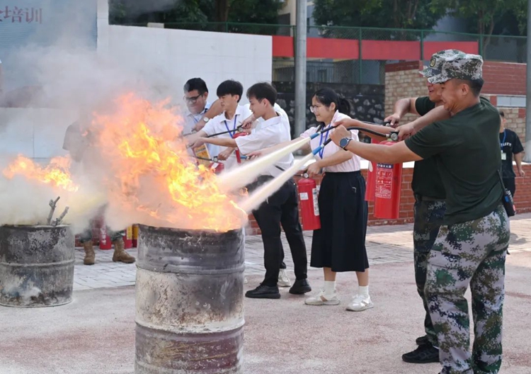 理論學(xué)習(xí)結(jié)束后,開始滅火實操環(huán)節(jié)。在滅火體驗區(qū),同學(xué)們在保衛(wèi)人員的專業(yè)指導(dǎo)下,使用干粉滅火器將燃燒中的火焰撲滅。通過親身體驗,熟悉了滅火器的使用步驟,增強了師生在面對突發(fā)火災(zāi)時的應(yīng)變能力。