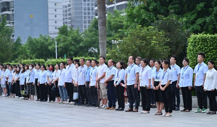 董事長(zhǎng)李益,黨委書(shū)記、督導(dǎo)專(zhuān)員蒙本曼,黨委副書(shū)記、校長(zhǎng)羅艷妮,副校長(zhǎng)黃德偉、蔣茂麗,校長(zhǎng)助理李明澤,校長(zhǎng)助理梁善雅及中層干部、師生代表參加升旗儀式。黨委副書(shū)記黃秋霞主持儀式。