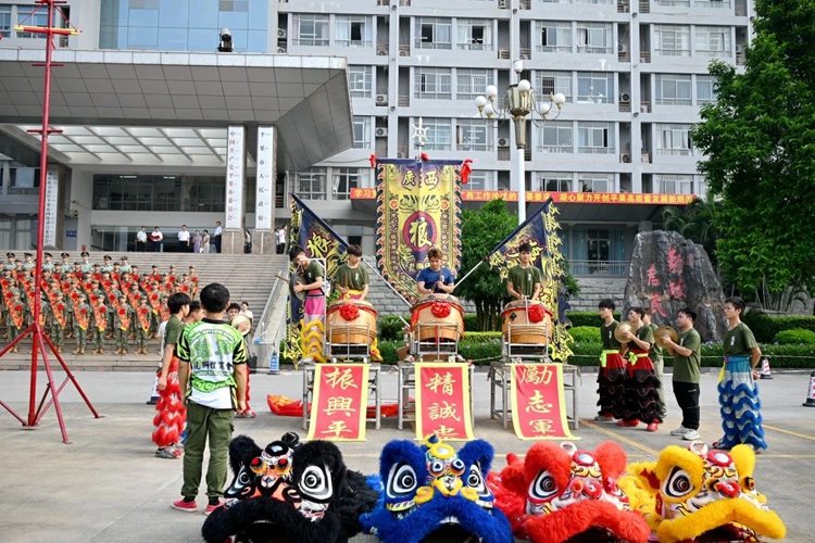 靈動的獅子在鑼鼓聲中跳躍、舞動寓意著新兵們在部隊中能夠如龍似虎,勇往直前
