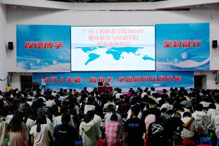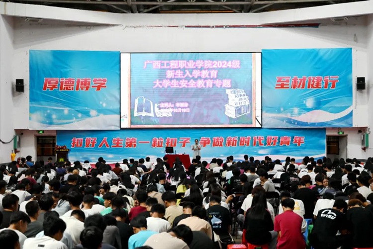 新生入學(xué)教育是大學(xué)生思想政治教育中的重要環(huán)節(jié),為貫徹落實立德樹人根本任務(wù),引導(dǎo)和幫助2024級新同學(xué)盡快適應(yīng)大學(xué)生活,樹立正確的理想信念,增強愛校榮校情感,提升遵紀守法意識、生命安全意識、專業(yè)學(xué)習(xí)能力和職業(yè)生涯規(guī)劃能力,做有理想、敢擔當、能吃苦、肯奮斗的新時代青年,2024年10月8日—10月31日,廣西工程職業(yè)學(xué)院在體育館組織開展2024級新生入學(xué)教育。