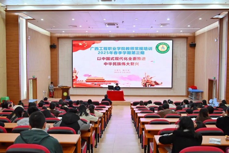 3月11日下午,廣西工程職業(yè)學(xué)院在圖文信息大樓一樓報(bào)告廳舉行“以中國(guó)式現(xiàn)代化全面推進(jìn)中華民族偉大復(fù)興”專題培訓(xùn)。此次培訓(xùn)為我校2025年春季學(xué)期第三期教師常規(guī)培訓(xùn),由馬克思主義學(xué)院楊文雙老師主講,全體教職工參加了培訓(xùn)。