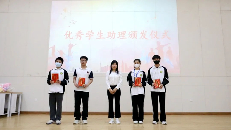 鄒聲華科長(zhǎng)為獲得二等獎(jiǎng)的同學(xué)頒獎(jiǎng)