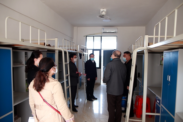 評(píng)估組一行實(shí)地檢查學(xué)生宿舍