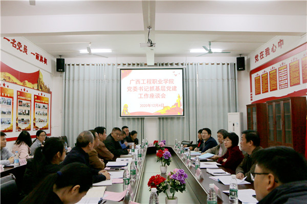 12月4日,自治區(qū)教育廳民辦教育管理處處長蔣國平、廣西外國語學院黨委書記周江煜、百色市委教育工委委員、市教育局副局長梁富文、自治區(qū)黨委教育工委組織部二級主任科員賀志超一行4人到我校開展黨委書記抓基層黨建調研。平果市教育局黨委副書記李小榮、平果市大學園區(qū)黨工委書記楊敏捷出席調研活動;我校黨委書記呂偉斌、紀委書記、董事長李益、校長唐林,黨委副書記、副校長胡細木,以及其他黨委委員、紀委委員、黨支部書記代表、黨委辦公室全體人員出席調研會。