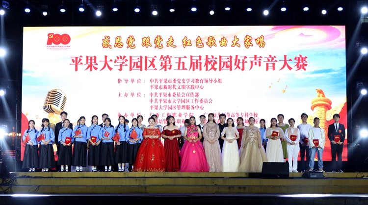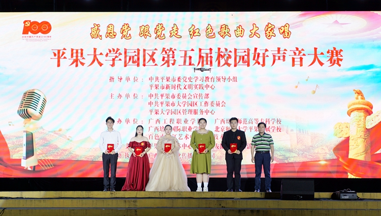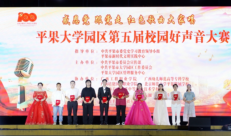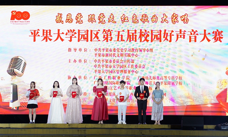 百年征程波瀾壯闊,百首紅歌頌贊初心。6月18日晚,我校教師蘇澤發(fā)、學(xué)生楊子懿等師生4人入圍平果市“感黨恩 跟黨走 紅色歌曲大家唱一一平果大學(xué)園區(qū)第五屆校園好聲音大賽”決賽,并取得銀獎(jiǎng)2項(xiàng)、銅獎(jiǎng)1項(xiàng)、優(yōu)勝獎(jiǎng)1項(xiàng)的好成績(jī)。