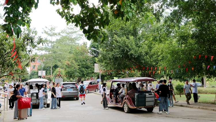 9月5日上午8時(shí),學(xué)校迎新志愿者在南寧吳圩機(jī)場(chǎng),南寧火車站、南寧東站,南寧埌東汽車站、江南客運(yùn)站、安吉客運(yùn)站、西鄉(xiāng)塘客運(yùn)站、金橋客運(yùn)站;平果火車站、平果雷感汽車站設(shè)置接站服務(wù)點(diǎn),迎接新同學(xué),并安排迎新專車接送新生及其家長(zhǎng)到學(xué)校,為新生送上了工程的第一份溫暖。