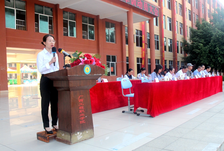 軍訓(xùn)動員大會現(xiàn)場 9月6日上午8:30,廣西工程職業(yè)學(xué)院2021級第二批新生軍訓(xùn)動員大會在魯班廣場舉行。學(xué)校執(zhí)行校長、紀委書記李益,副校長林艷、彭高彬、林萌、吳先夏、" />