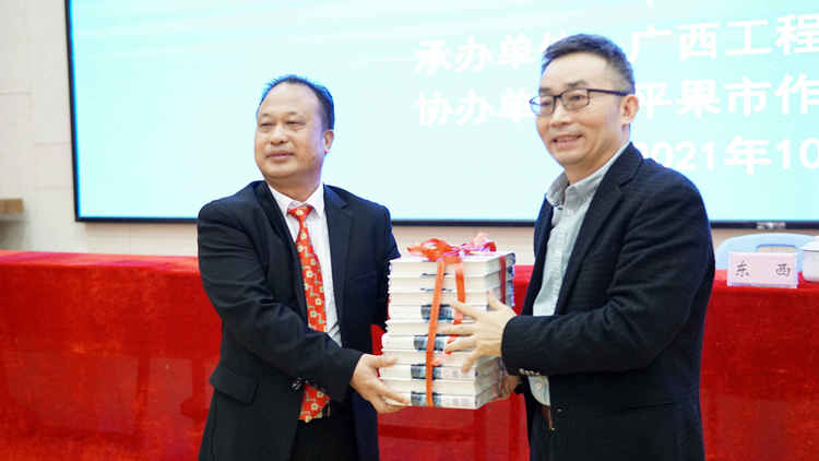 講座上,廣西文聯(lián)主席、廣西作家協(xié)會主席、廣西民族大學教授向平果市文聯(lián)、廣西工程職業(yè)學院贈送新作《回響》。學校紀委書記李益代表學校接受了書籍捐贈。田代琳教授還為獲贈新書的文學愛好者們親筆簽名,送上祝福和希望。