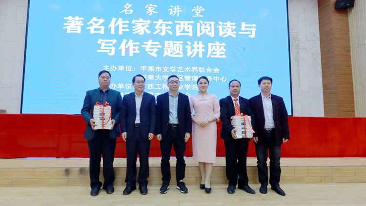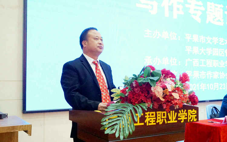 2021年10月23日上午,由平果市文學藝術界聯(lián)合會、平果市大學園區(qū)管理服務中心主辦,廣西工程職業(yè)學院承辦,平果市作家協(xié)會協(xié)辦的平果市2021年“名家講堂——田代琳(東西)閱讀與寫作專題講座”在我校圖文信息大樓報告廳舉行。
