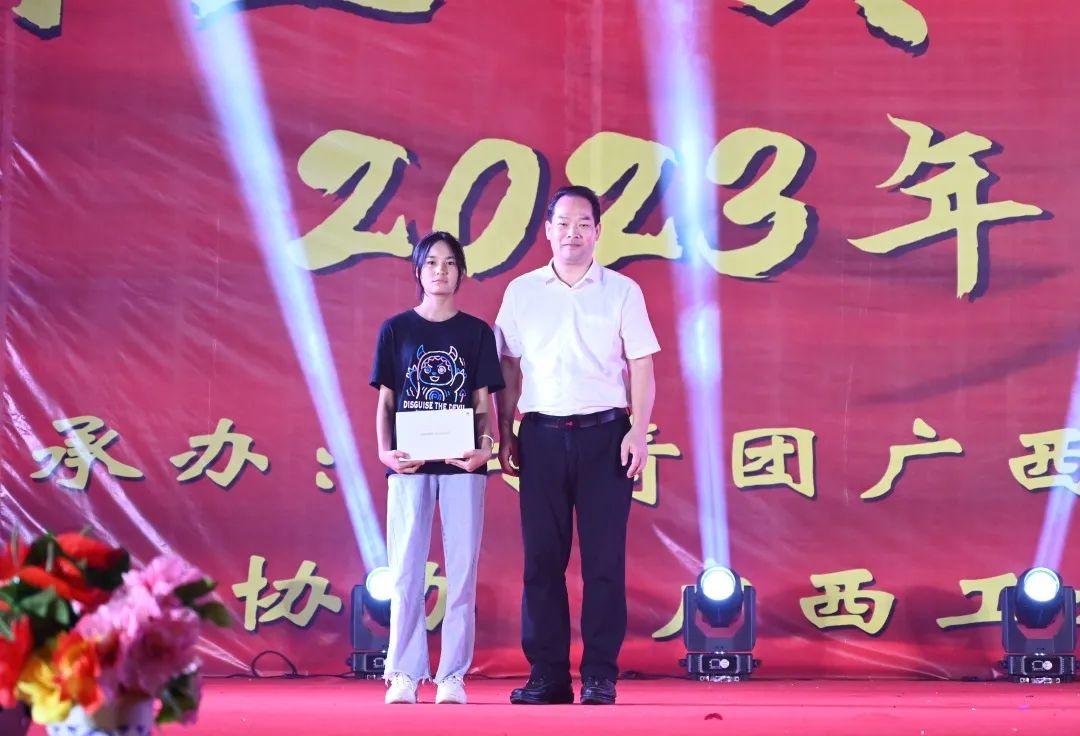 蒙本曼書記為獲得二等獎(jiǎng)的同學(xué)頒獎(jiǎng)
