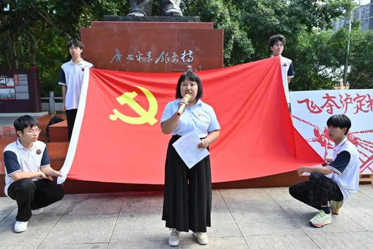 在鄧小平銅像廣場,學(xué)校黨委副書記、校長羅艷妮講話,她指出此次“紅色基因體驗行”專題研學(xué)活動不僅是一次參觀學(xué)習(xí)之旅,更是一次精神洗禮和黨性錘煉。通過實(shí)地參觀體驗和現(xiàn)場教學(xué),學(xué)生們深刻感受到了革命先烈們的英勇事跡和崇高精神,進(jìn)一步堅定了理想信念,增強(qiáng)了歷史使命感和社會責(zé)任感。希望同學(xué)們以此次研學(xué)活動為契機(jī),傳承紅色基因,弘揚(yáng)紅色精神,努力成為有理想、敢擔(dān)當(dāng)、能吃苦、肯奮斗的新時代好青年,為實(shí)現(xiàn)中華民族偉大復(fù)興的中國夢貢獻(xiàn)青春力量。