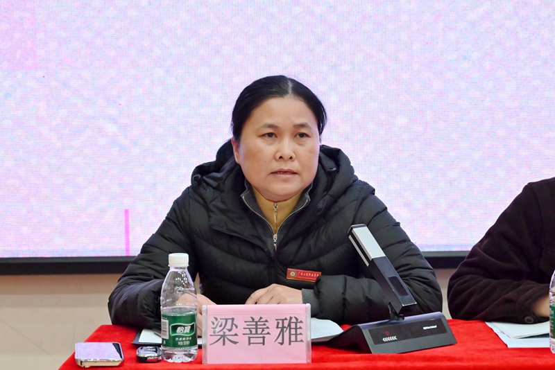 圖為校長(zhǎng)助理梁善雅作安保工作、繼續(xù)教育與培訓(xùn)工作以及圖書(shū)館工作等進(jìn)行部署