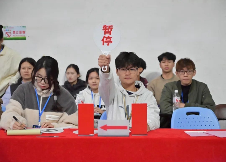 土木工程學(xué)院韋世揚同學(xué)代表獲獎運動員發(fā)言,他在發(fā)言中衷心感謝學(xué)校舉辦此次大賽和營造濃厚的比賽氛圍,讓他們深感榮耀與責(zé)任。其次,感恩隊友,隊友的團(tuán)結(jié)與拼搏使每次配合都迸發(fā)強大力量。最后,感謝同學(xué)們的支持,你們的吶喊是我們的力量源泉。