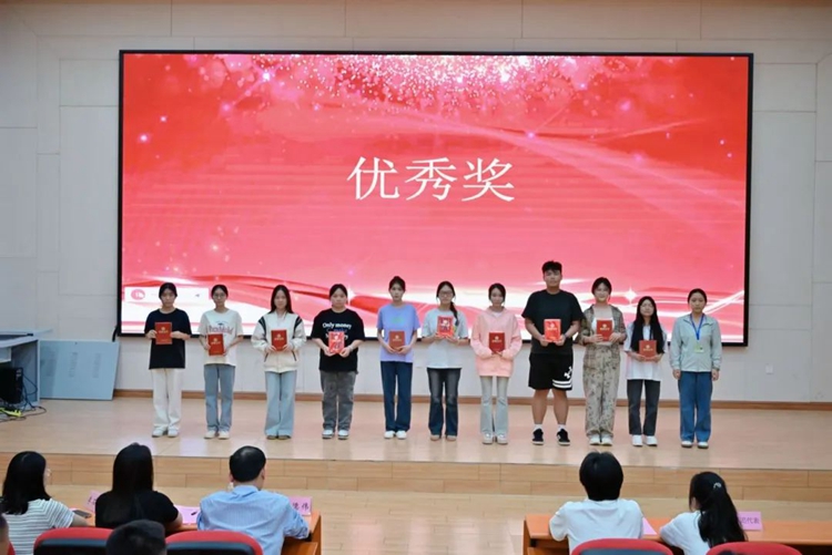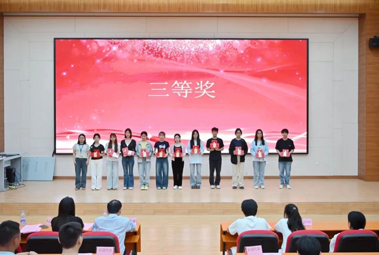 圖為團(tuán)委副書記李麗清為獲得“二等獎(jiǎng)”的同學(xué)頒獎(jiǎng)