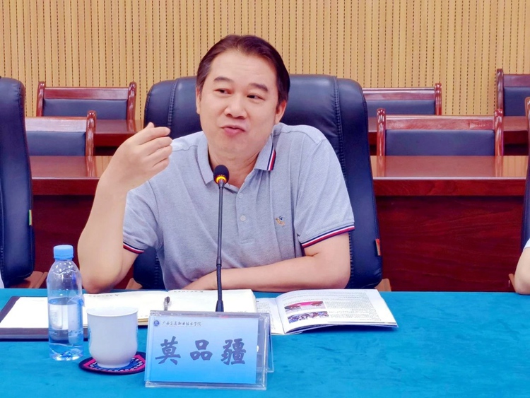 圖為廣西交通職業(yè)技術(shù)學(xué)院路橋工程學(xué)院院長莫品疆主持會議