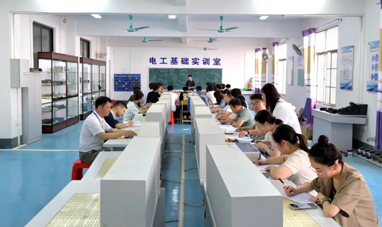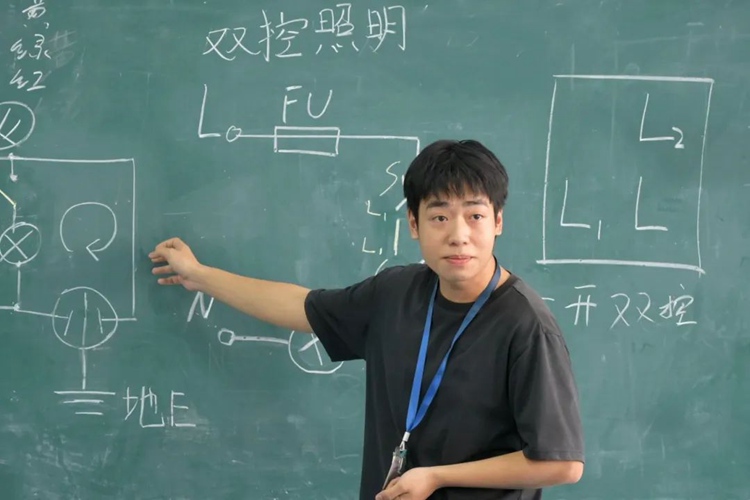 圖為池浩鵬老師授課《初級維修電工實訓(xùn)》
