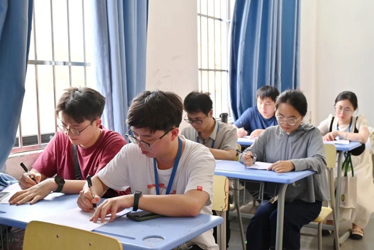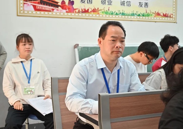 學(xué)校黨委書記、督導(dǎo)專員蒙本曼深入教學(xué)一線,認真聆聽并細致評析教師們的公開課。