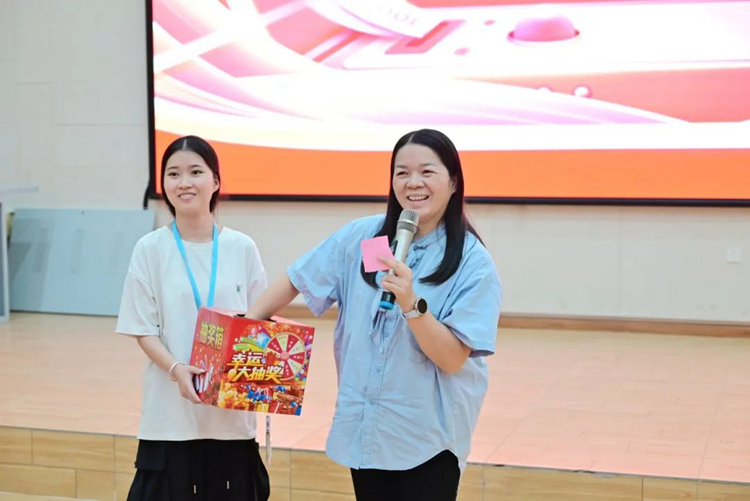 緊張而激烈的比賽環(huán)節(jié)結(jié)束后,大賽進入了令人期待的抽獎環(huán)節(jié),增添了賽事的趣味性與互動性,營造了輕松愉悅的競賽氛圍。經(jīng)濟管理學院黨支部副書記潘翠萍和辦公室主任雷紅老師分別上臺抽取幸運觀眾,現(xiàn)場氣氛高潮迭起。