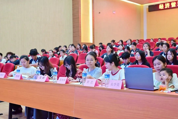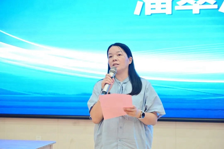 圖為經(jīng)濟管理學院黨支部副書記潘翠萍致辭