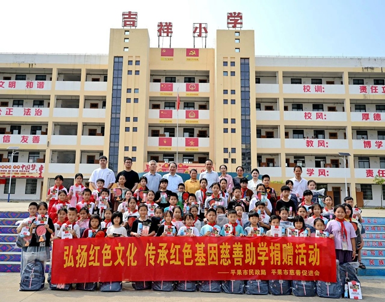 為弘揚紅色精神,踐行公益使命,助力教育事業(yè)發(fā)展,2025年4月29日,廣西工程職業(yè)學(xué)院赴平果市吉祥小學(xué)開展“弘揚紅色文化 傳承紅色基因”慈善助學(xué)捐贈活動,捐贈圖書及學(xué)習(xí)用品等,為孩子們送去了學(xué)習(xí)物資與關(guān)懷,希望孩子們通過紅色文化的浸潤,博覽群書,增長知識面,奮發(fā)向上,實現(xiàn)人生夢想。活動由平果市民政局與平果市慈善促進會主辦。我校副校長黃德偉、團委副書記李麗清及教師代表參加了捐贈活動。