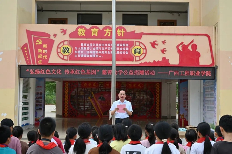 紅色精神照亮成長路,公益善舉溫暖學(xué)子心。此次捐贈活動不僅是一次愛心的傳遞,是一次精神的洗禮,更是對教育事業(yè)的支持。廣西工程職業(yè)學(xué)院以實際行動弘揚了紅色革命精神,踐行了社會責(zé)任感和擔(dān)當,為地方教育事業(yè)注入了新的活力,激勵廣大青少年賡續(xù)紅色血脈,勤奮學(xué)習(xí),努力成長為擔(dān)當民族復(fù)興大任的時代新人。