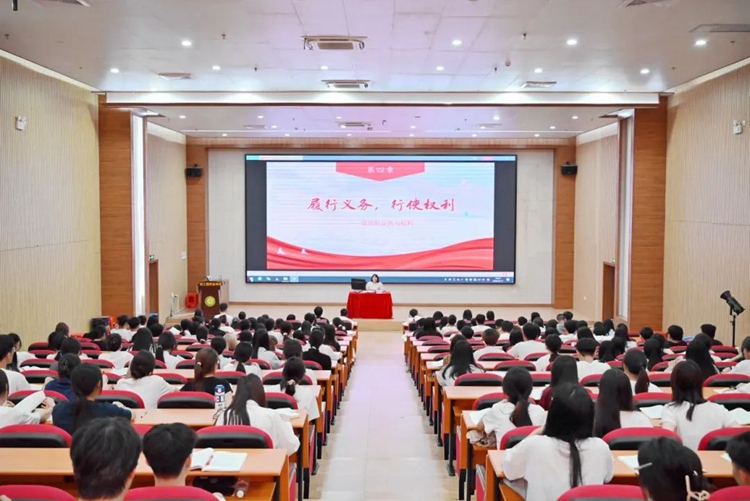 圖為黨委副書記、校長羅艷妮作題為《履行義務(wù),行使權(quán)利》的專題培訓(xùn)