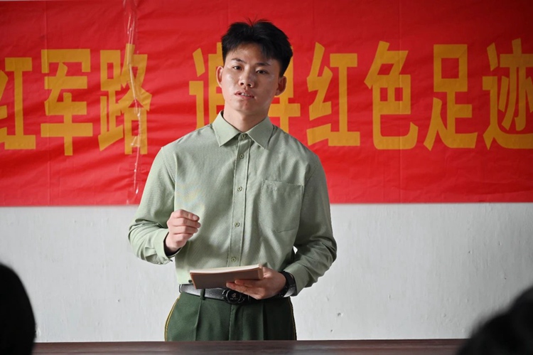 學(xué)生代表鄧文友和大家分享了他的參觀感悟,號(hào)召大家將紅色精神融入日常的點(diǎn)滴行動(dòng)中,以實(shí)際行動(dòng)傳承紅色基因,賡續(xù)精神血脈。