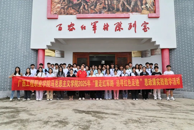 為了進(jìn)一步推動(dòng)思政小課堂與社會(huì)大課堂的深度融合,充分發(fā)揮“大思政課”在培養(yǎng)學(xué)生社會(huì)責(zé)任感和使命感方面的作用,推動(dòng)思想政治理論教學(xué)和實(shí)踐教學(xué)相融合,切實(shí)提升思想政治教育實(shí)效性,5月18日,廣西工程職業(yè)學(xué)院馬克思主義學(xué)院赴百色市田東縣開展“重走紅軍路 追尋紅色足跡”思政課實(shí)踐教學(xué)活動(dòng)?;顒?dòng)由黨委書記、政府督導(dǎo)專員蒙本曼帶隊(duì),思政課教師及學(xué)生代表共60多人參加。本次實(shí)踐活動(dòng)分四個(gè)教學(xué)點(diǎn),師生先后參觀了那恒村、二牙碼頭、右江革命紀(jì)念館、紅軍會(huì)師廣場(chǎng)、百谷村陳列室等。