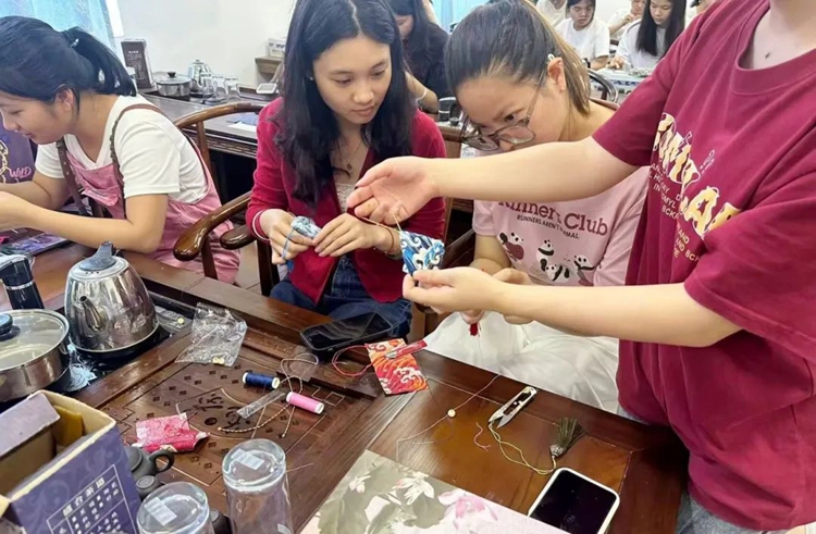 大家相互交流制作心得,分享著色彩搭配與針法運用的小竅門,小小的香囊不僅成為師生們手中精美的作品,更成為情感交流與文化傳承的紐帶。