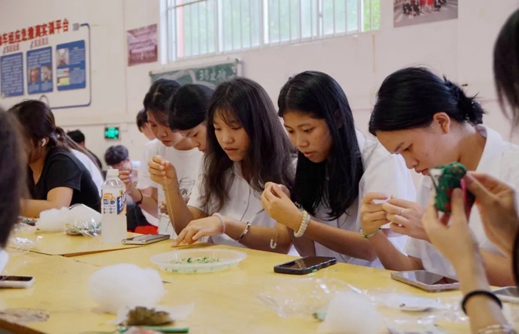 圖為同學(xué)們制作手工艾草錘