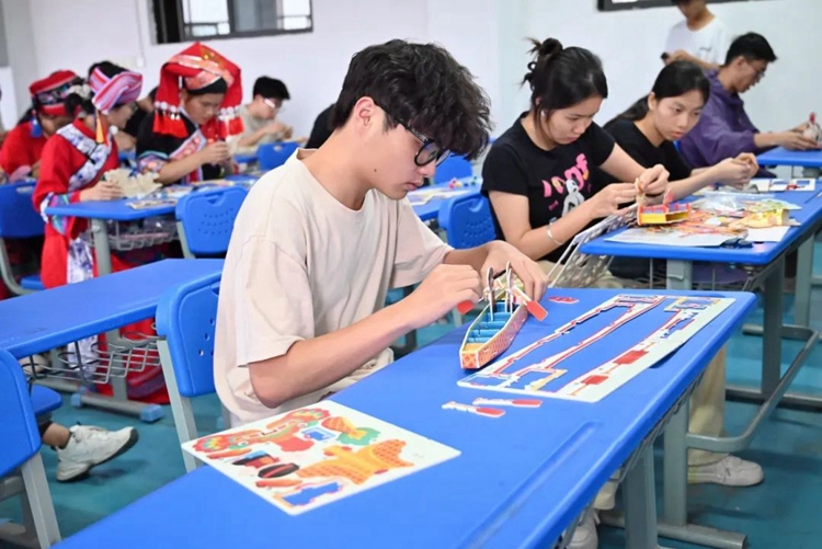 圖為同學(xué)們拼龍舟圖