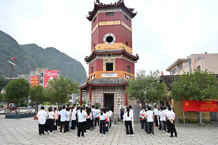 講解員給黨員們詳細講述了魁星樓建設(shè)的坎坷歷史,以及鄧小平、張云逸和韋拔群等先輩們在魁星樓內(nèi)指揮東蘭人民開展武裝革命的偉大功勛。