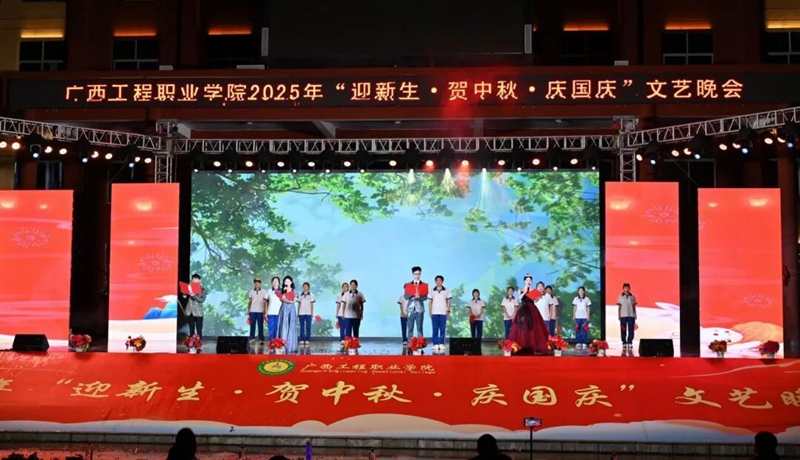 黨委書記、政府督導(dǎo)專員蒙本曼宣布2025 年廣西工程職業(yè)學(xué)院 “迎新生?賀中秋?慶國慶” 文藝晚會正式開始。