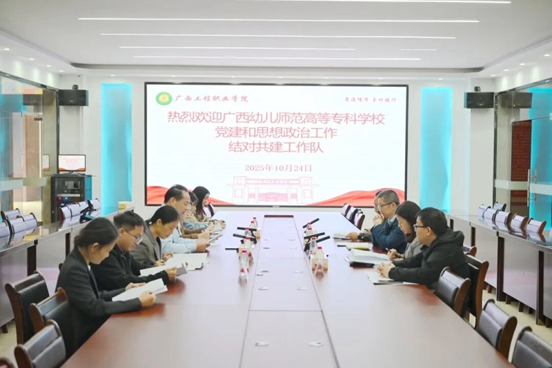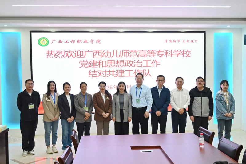 廣西幼兒師范高等??茖W校黨委組織部副部長李盛勇感謝我校的熱情接待。他表示,兩校之間依托獨特的地理優(yōu)勢,可以靈活多變開展結(jié)對共建工作,爭取把結(jié)對共建工作做出亮點、做出品牌。此次選派工作隊進駐廣西工程職業(yè)學院開展結(jié)對共建工作,是兩校落實黨建和思想政治工作結(jié)對共建工作的具體舉措,期待兩校以促成項目落實為抓手、以資源共建共享為途徑,謀求兩校在黨建品牌創(chuàng)建、思政隊伍培育、學科專業(yè)發(fā)展等領(lǐng)域有更多合作,不斷推動兩校黨建和思想政治工作實現(xiàn)更好發(fā)展。