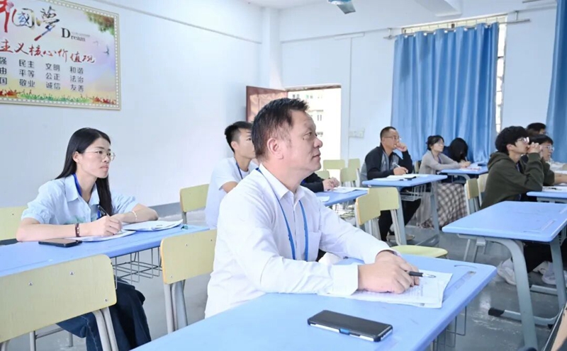學校黨委書記、政府督導專員蒙本曼,黨委副書記黃秋霞走進教學一線,隨機選取多門不同學科的課堂,以 “學生” 視角全程專注聆聽教師公開課。過程中,手持筆記本細致記錄,重點關注課堂導入設計、教學重難點拆解邏輯、師生互動的頻次與質量、多媒體教學工具的運用效果,同時觀察學生的課堂注意力集中情況與知識回應狀態(tài)。
